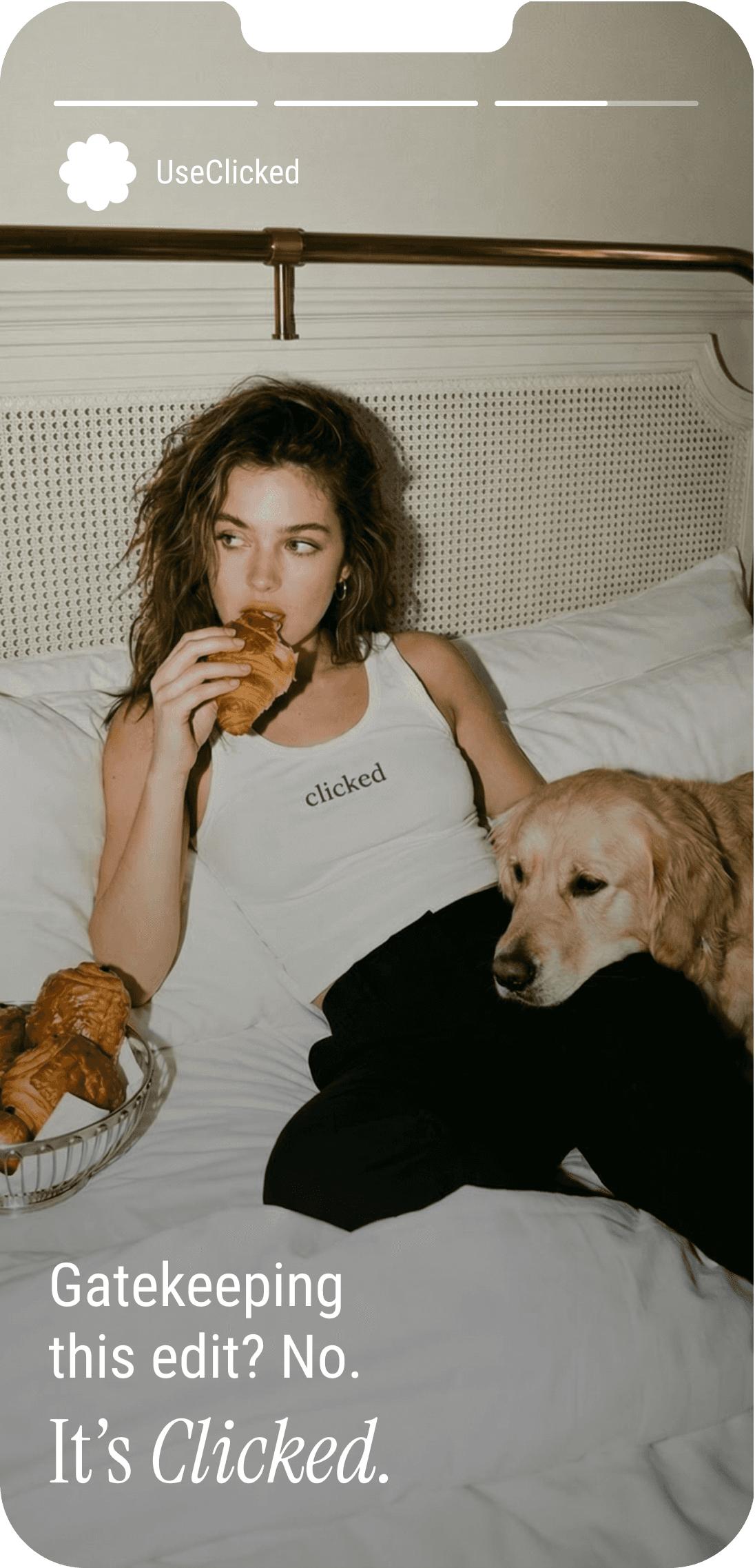 "Since I started using Clicked, it is the only app I use to edit my photos. It has everything I need in one place. I really like a clean style for my images, and this app makes it so easy. It is absolutely worth the subscription. Also, the team is super nice and helps fast if you have a question!"
